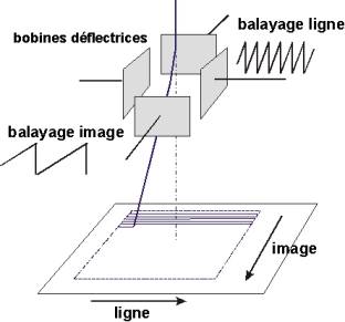 Le balayage du faisceau est obtenu à l’aide de 2 jeux de bobines déflectrices